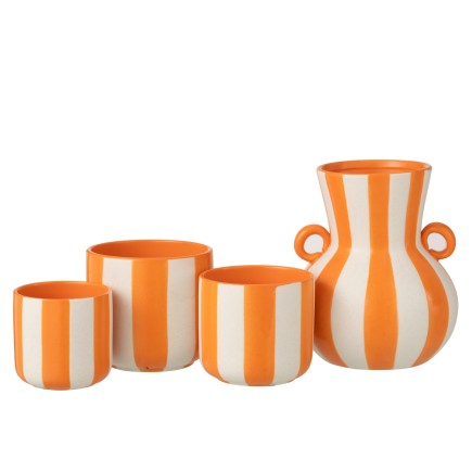 Dimensioni : 17,8 x 10,5 x 22,8 cm Vaso a forma di pesce in gres arancione, originale oggetto decorativo dal fascino artigianale. La sua silhouette grafica dona dinamismo a una consolle o a una mensola, perfetto con fiori freschi o rami.